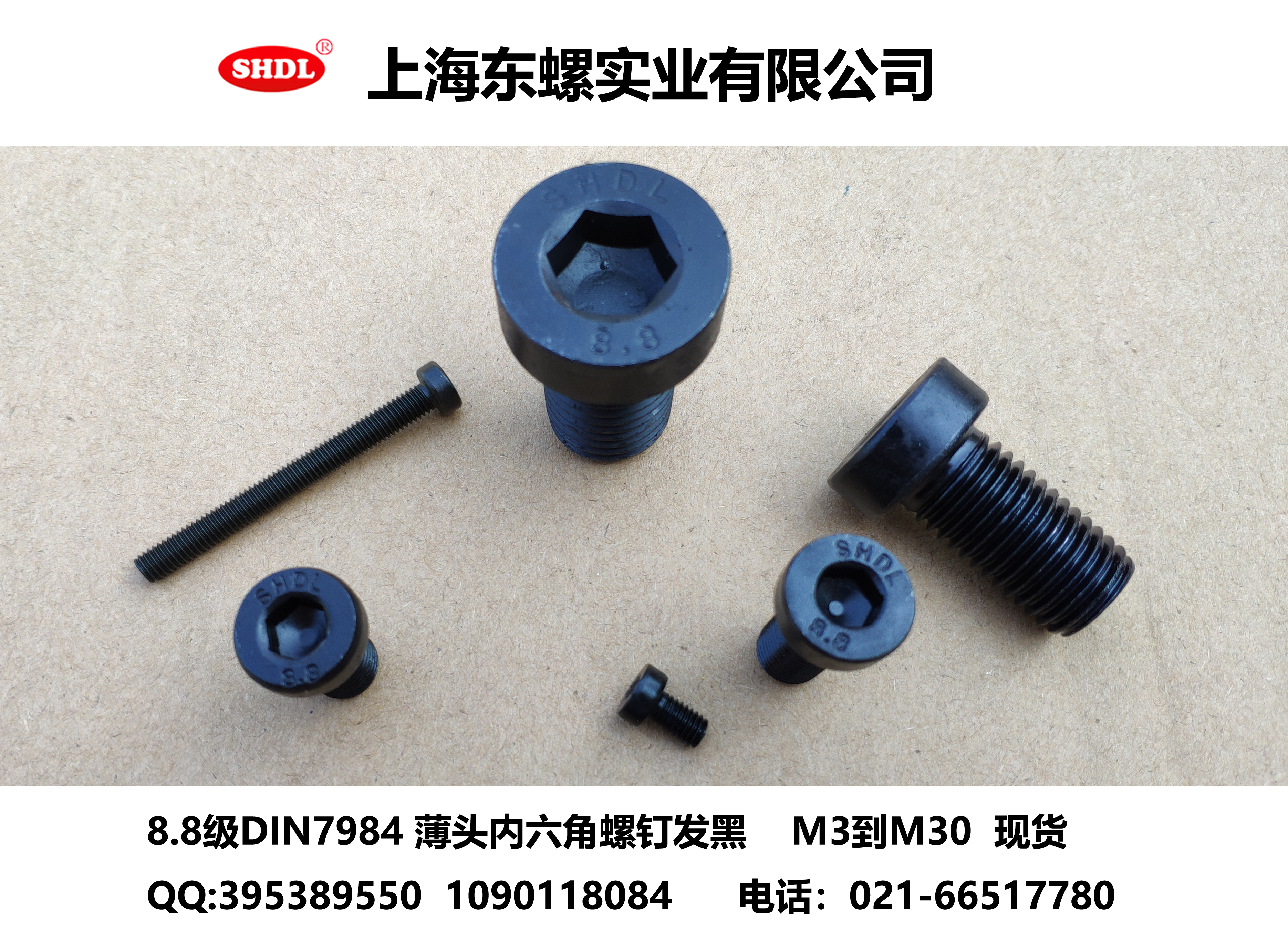 8.8級DIN7984薄頭內六角螺絲,規格:M3-M30,表面處理:發黑,蘭白鋅等.
